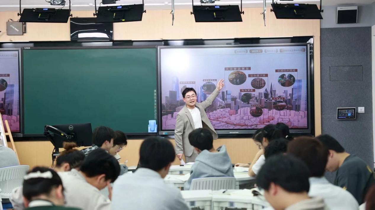 他采用“课前引导出题——课中互动解题——课后真题真做”的闭环教学模式,始终关注城乡居民“急难愁盼”的设施空间问题,并将其转化为课堂上的鲜活教材。